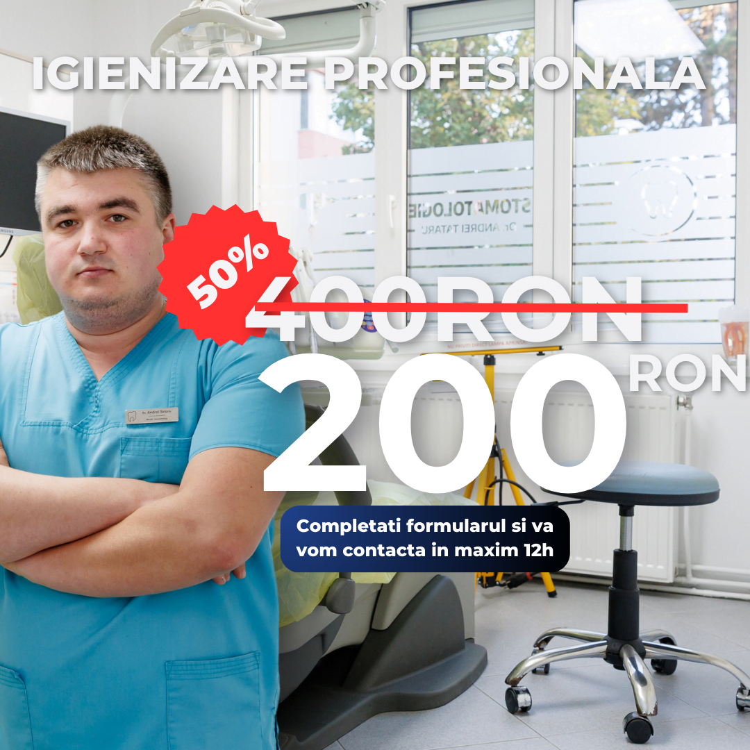 BONUS:Obține un plan de tratament personalizat în oferta noastră de igienizare. Descoperă soluții pentru sănătatea ta orală și zâmbetul perfect.